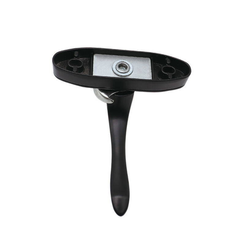 Crescent-shaped lock body: The black, long handle is ergonomically designed for comfortable grip. Turning it extends or retracts the locking point, allowing the window to open and lock.